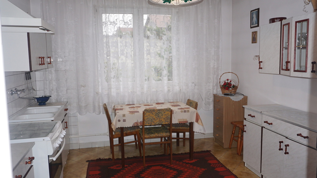 *parter wita nas wiatrołapem z którego klatką schodową zmierzamy ku następującym pomieszczeniom: duży pokój gościnny , widna - przechodnia kuchnia , pokój typu jadalnia oraz łazienka z wanną, wc i oknem.