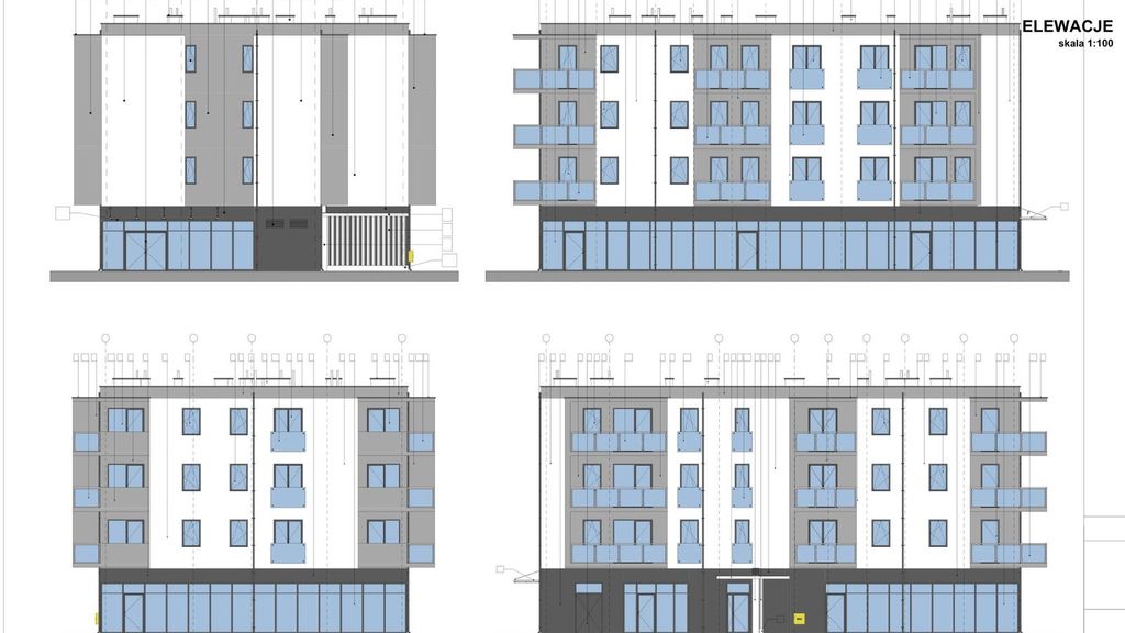 Do nieruchomości dołączony jest gotowy projekt inwestycyjny z pozwoleniem na budowę, obejmujący budynek wielorodzinny handlowo‑usługowo‑mieszkalny. Projekt zakłada nowoczesny obiekt w kształcie litery „L”, wykonany w tradycyjnej technologii murowanej.