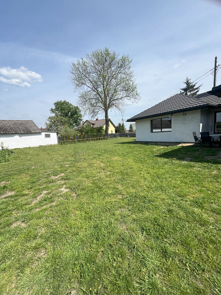 Dom o łącznej powierzchni 150 m2 to parterowy budynek, częściowo umeblowany, dwa pomieszczenia- łazienka i sypialnia do wykończenia wedle własnego uznania.